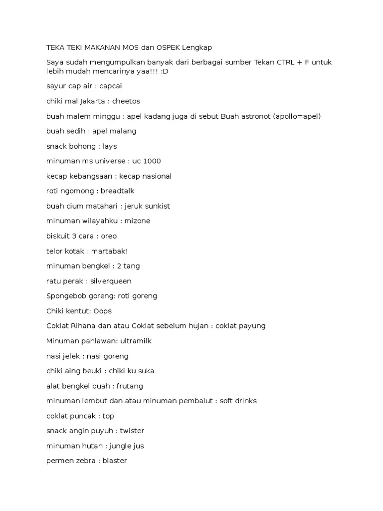 Teka Teki Makanan Mos Dan Ospek Lengkap from imgv2-2-f.scribdassets.com Makanan kegemaran monyet yang selalu menjatuhkan orang. Dia berbentuk batang, berwarna kuning, dan mempunyai bulu lebat, apakah ia? Download free game teka teki makanan 1.9 for your android phone or tablet, file size: Untuk mengasah otak anda menjadi lebih kreatif dan imajinatif, teka teki lucu tebak nama makanan cocok buat anda.ada berbagai macam tebak tebakan di dunia. 2.3 hi, there you can download apk file teka teki makanan for android free, apk file version is 1.9 to download to your android device just click this. 30.68 mb, was updated 2018/31/01 requirements:android: Selecting the correct version will make the teka teki makanan game work better, faster, use less battery power. Ada makanan yang terdiri dari makanan gerai mamak, restoran dan juga makanan fast food.